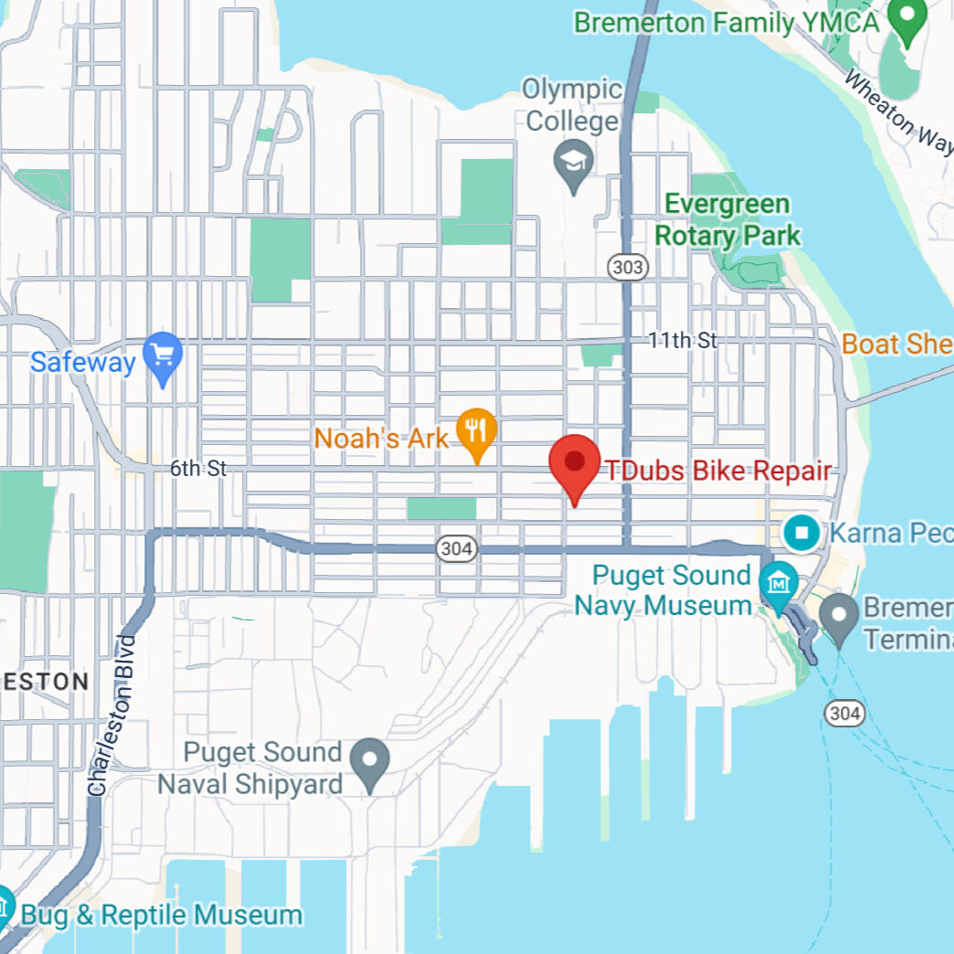 Located near the Puget Sound Naval Shipyard and Kitsap Naval Base, TDubs Bike Repairs Shop is here to serve the community. Stop by and support our small community business grow!